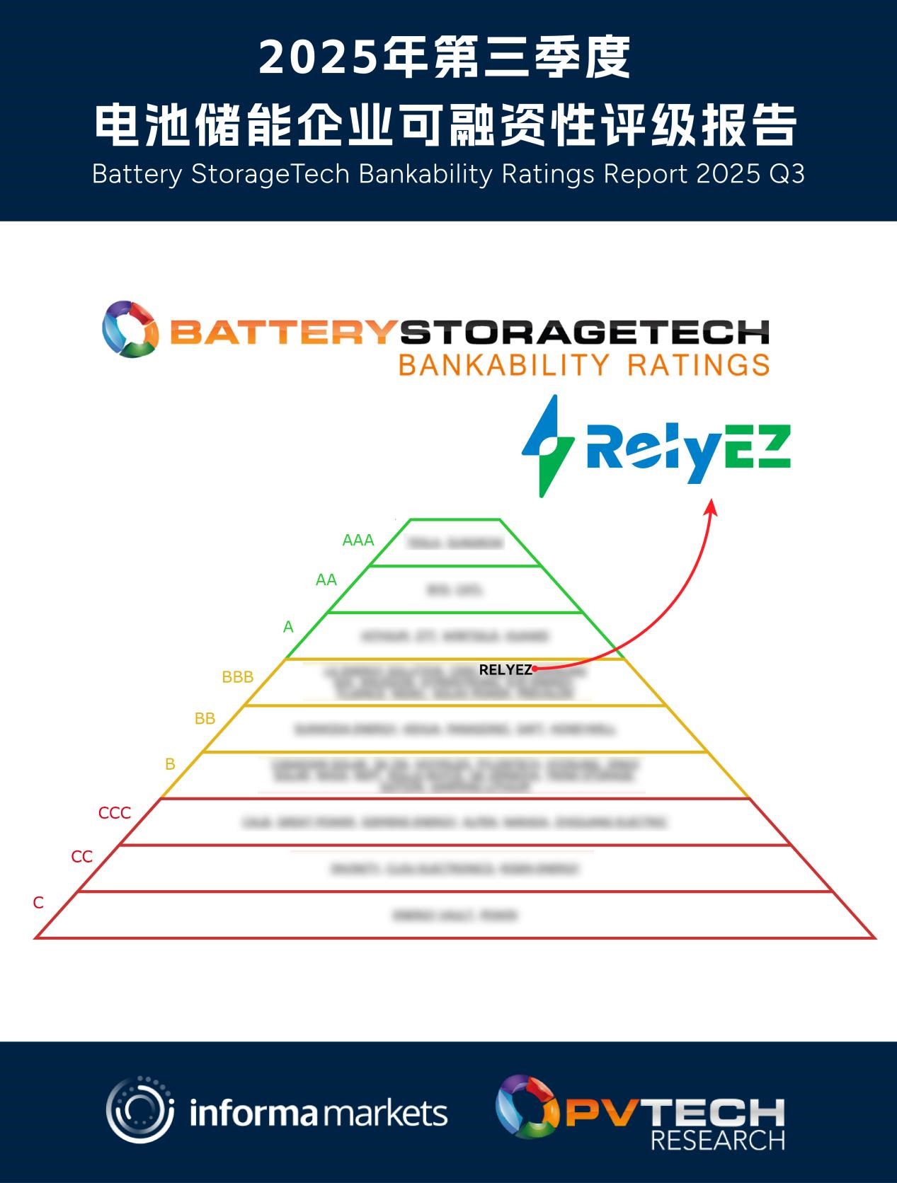 中國(guó)儲(chǔ)能網(wǎng)訊:近日,國(guó)際權(quán)威機(jī)構(gòu)Informa Markets正式發(fā)布《2025年第三季度儲(chǔ)能系統(tǒng)可融資性評(píng)級(jí)報(bào)告》。報(bào)告顯示,遠(yuǎn)信儲(chǔ)能(RelyEZ)蟬聯(lián)獲評(píng)BBB級(jí),穩(wěn)居全球儲(chǔ)能企業(yè)高可融資性陣營(yíng),凸顯其在國(guó)際市場(chǎng)的持續(xù)競(jìng)爭(zhēng)力與資產(chǎn)可信度。