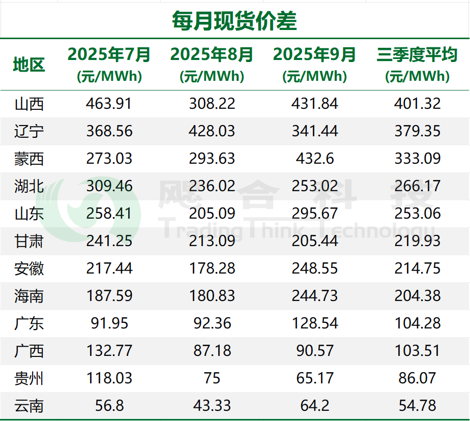 表1:2025年三季度不同省份現(xiàn)貨價差對比分析