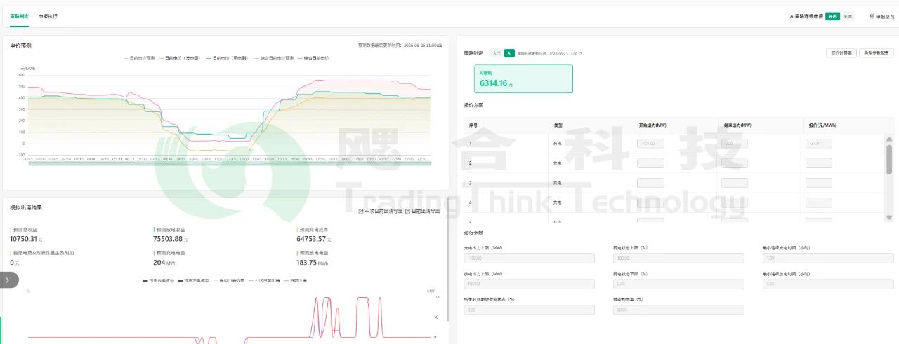 飔合科技構(gòu)建了一套覆蓋實時響應(yīng)、每日申報與收益復(fù)盤的完整策略體系,支持實時策略與收益預(yù)估的聯(lián)動調(diào)度,可通過接口對接完成自動響應(yīng)。系統(tǒng)化的智能策略解決方案已具備策略生成–參數(shù)輸出–模擬評估–收益閉環(huán)的一體化能力,可為區(qū)域儲能資產(chǎn)提供穩(wěn)定、可復(fù)制、可擴展的智能決策支撐。