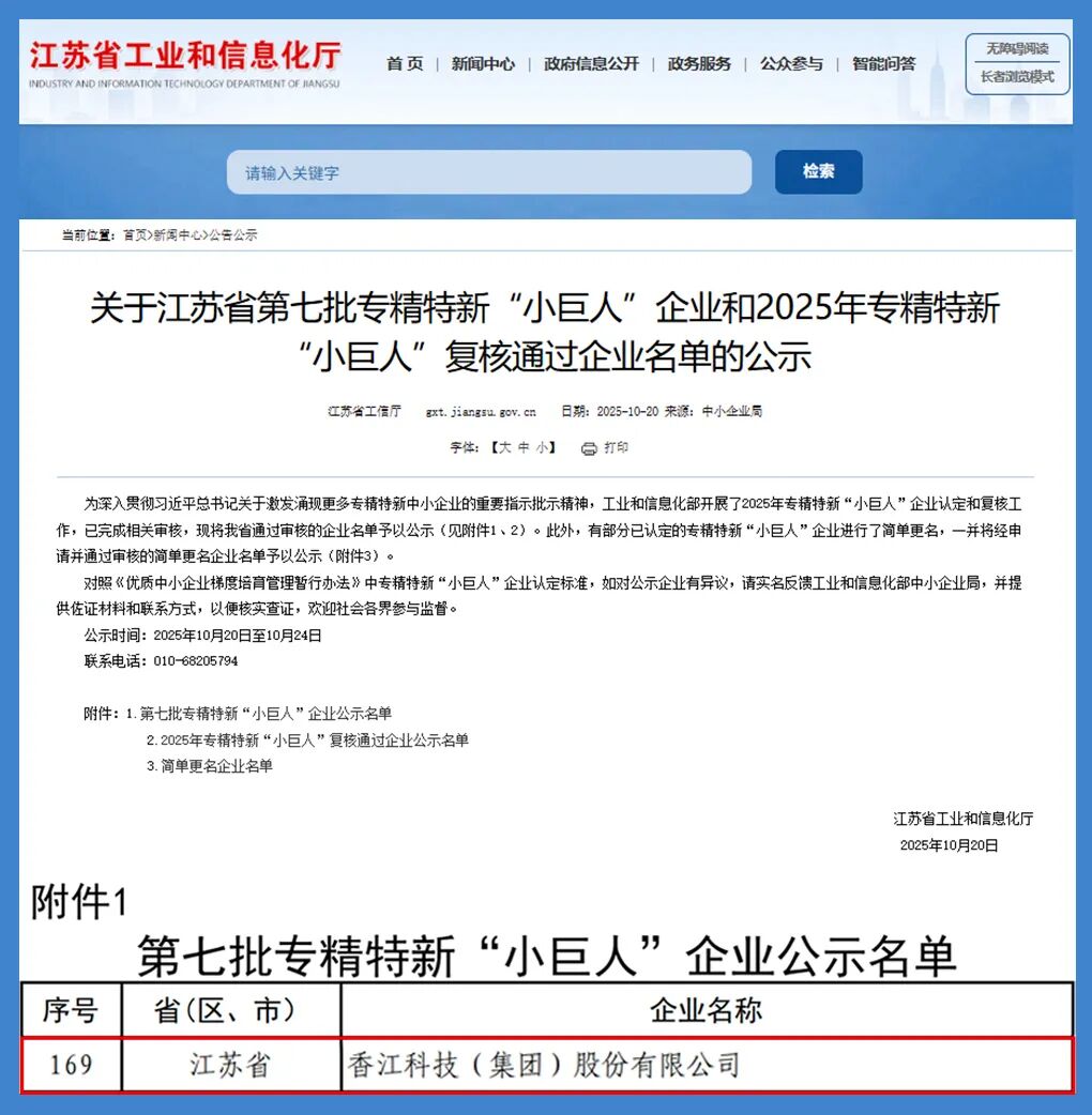 香江科技(集團(tuán))股份有限公司(以下簡稱:香江科技)憑借其深厚的技術(shù)積累,卓越的創(chuàng)新能力與行業(yè)影響力,成功榮膺國家級專精特新“小巨人”企業(yè)稱號并完成公示!