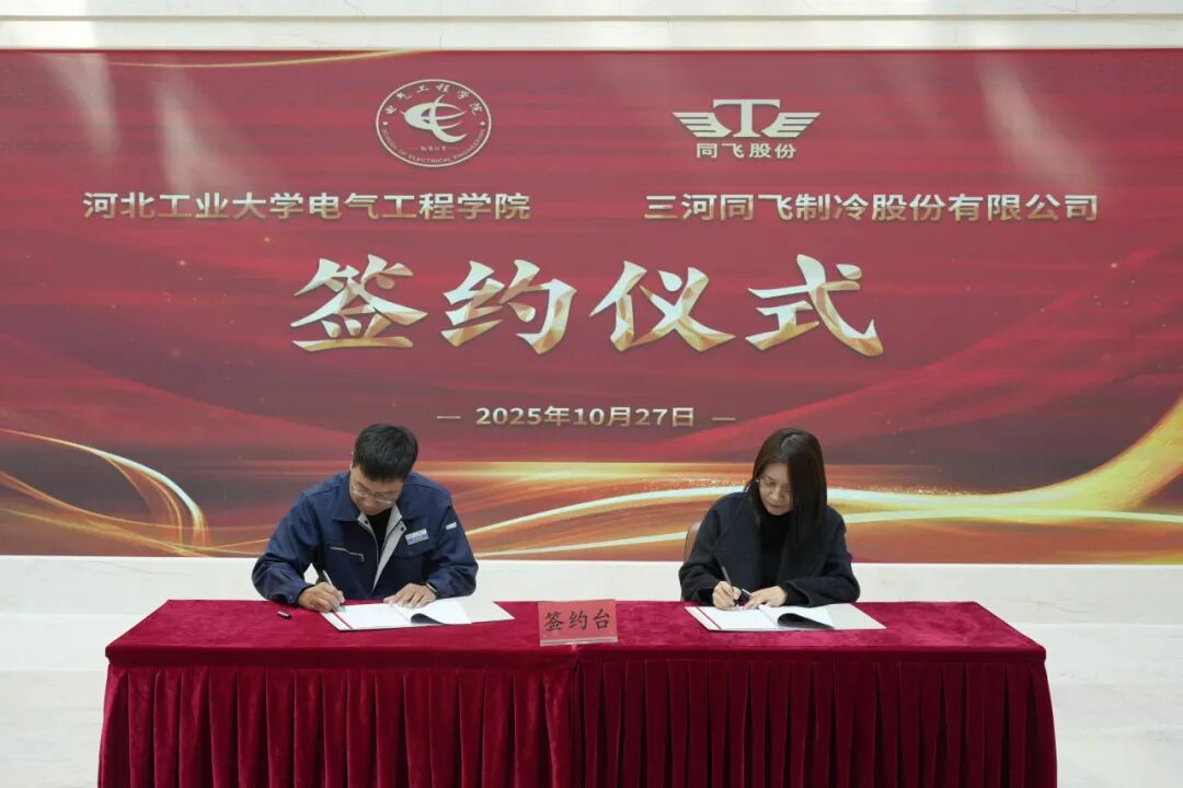 張浩雷總經(jīng)理強(qiáng)調(diào),河北工業(yè)大學(xué)電氣工程學(xué)院在電力系統(tǒng)、電氣自動(dòng)化等領(lǐng)域的深厚科研積淀與優(yōu)質(zhì)人才儲(chǔ)備,與同飛股份在智能溫控、綠色節(jié)能等方面的技術(shù)研發(fā)需求高度契合。他回顧了雙方前期合作成果,期待以此次簽約為契機(jī),進(jìn)一步拓寬合作維度,在定制化人才培養(yǎng)、關(guān)鍵技術(shù)攻關(guān)、科技成果轉(zhuǎn)化等方面開展實(shí)質(zhì)性合作,實(shí)現(xiàn)校企資源互補(bǔ)、互利共贏。