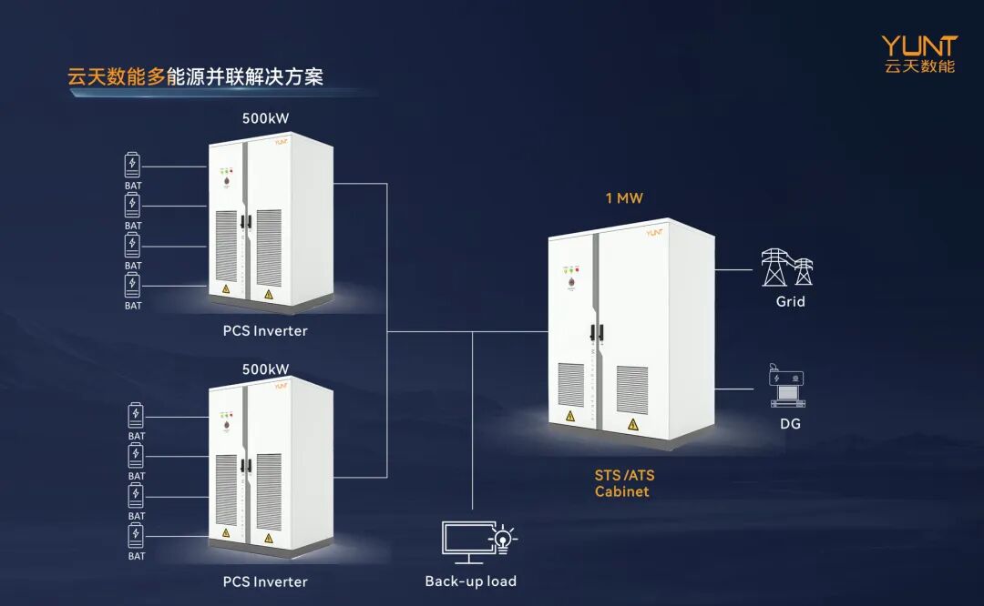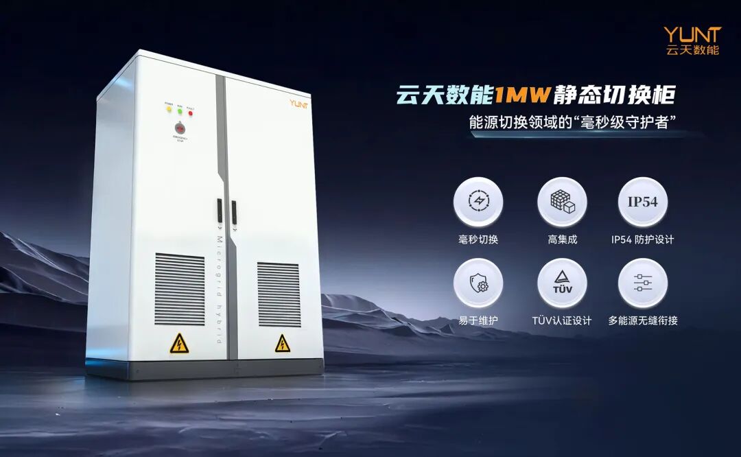 云天數(shù)能以“切換零感知、系統(tǒng)運(yùn)行高可靠”為核心研發(fā)理念,推出1MW 靜態(tài)切換柜(STS)。該產(chǎn)品基于雙向可控硅與智能控制算法,讓STS與傳統(tǒng)ATS協(xié)同互補(bǔ),在電網(wǎng)、柴油發(fā)電機(jī)(DG)、儲(chǔ)能系統(tǒng)、負(fù)載之間實(shí)現(xiàn)“毫秒級(jí)”切換,為多能源融合系統(tǒng)筑起“能源保障護(hù)城河”。
