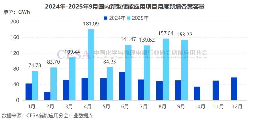 2025年1-9月新增備案容量超過445GW/1125GWh,容量規(guī)模同比增長147.48%。