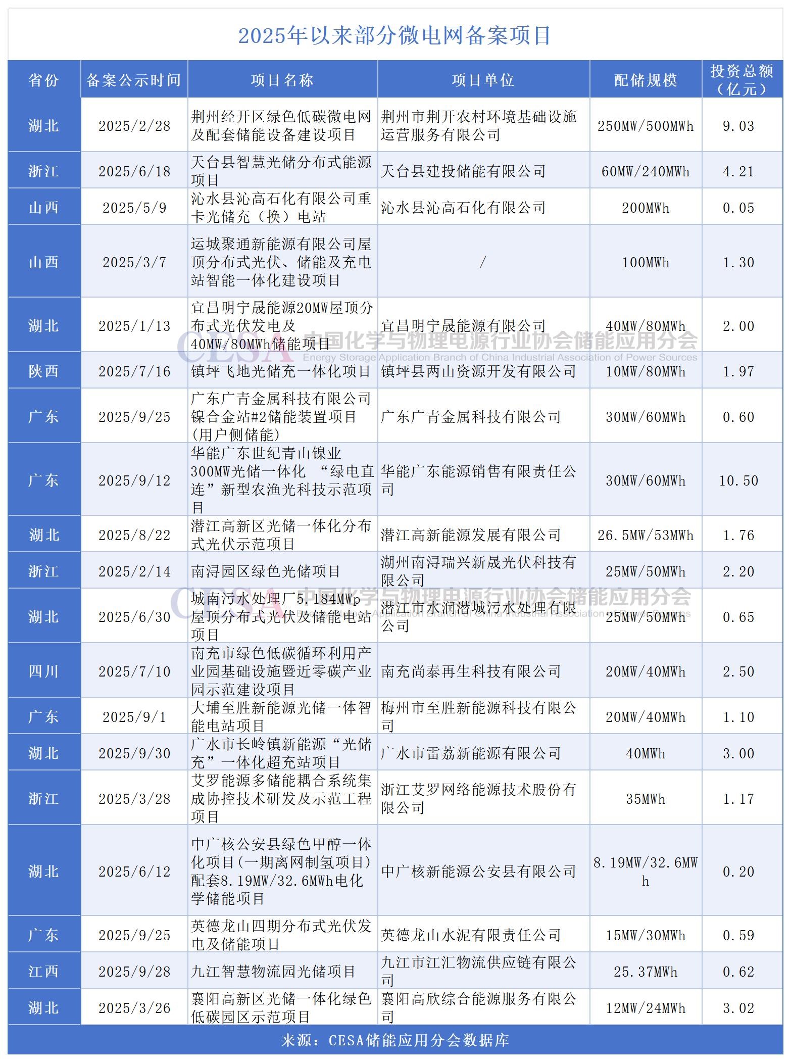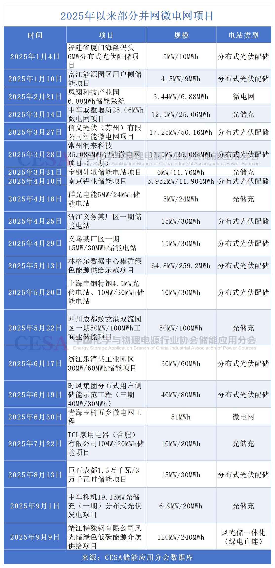 據(jù)CESA儲能應(yīng)用分會不完全統(tǒng)計,2025年1-9月,共有包括分布式光伏配儲、光儲充、光儲充一體化等場景221個微電網(wǎng)項目并網(wǎng),規(guī)??傆?18.49MW/1632.5MWh。