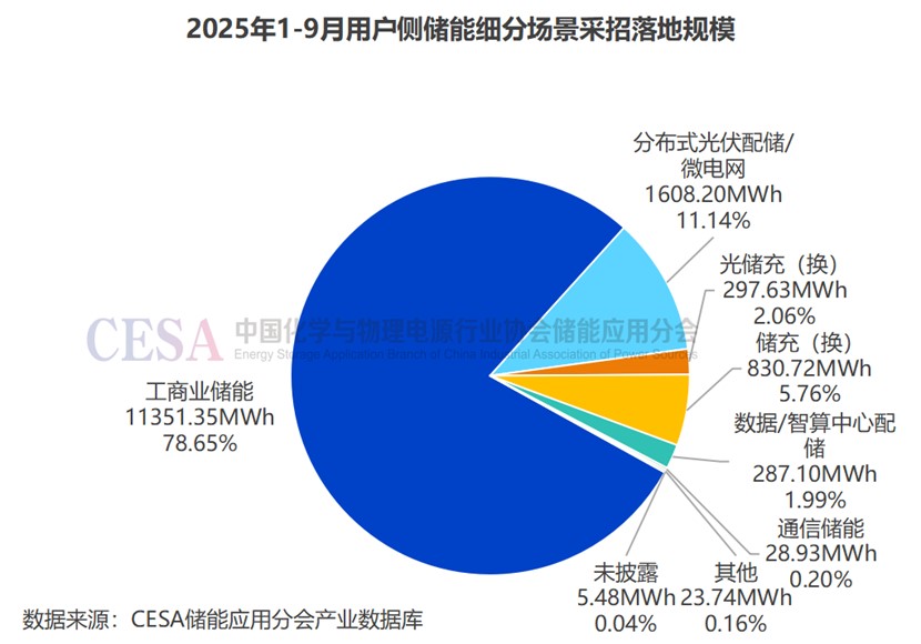 其他用戶側(cè)儲能項目(包括儲充、光儲充、分布式光伏配儲、微電網(wǎng)、通信儲能、數(shù)據(jù)/智算中心配儲、應(yīng)急電源、便攜式儲能、移動儲能、船用儲能等)采招落地947.05MW/3076.33MWh,占比17.05%(功率)/21.31%(容量),儲能應(yīng)用逐漸向靈活多樣化場景延伸。
