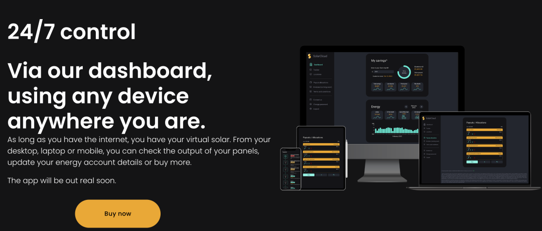 用戶買下后,可以在SolarCloud的在線平臺上實時查看發(fā)電量,電力收益會直接抵扣個人電費賬單。搬家或者更換電力供應(yīng)商都沒關(guān)系,面板份額可以隨賬戶轉(zhuǎn)移,不會因為換地方而失效。