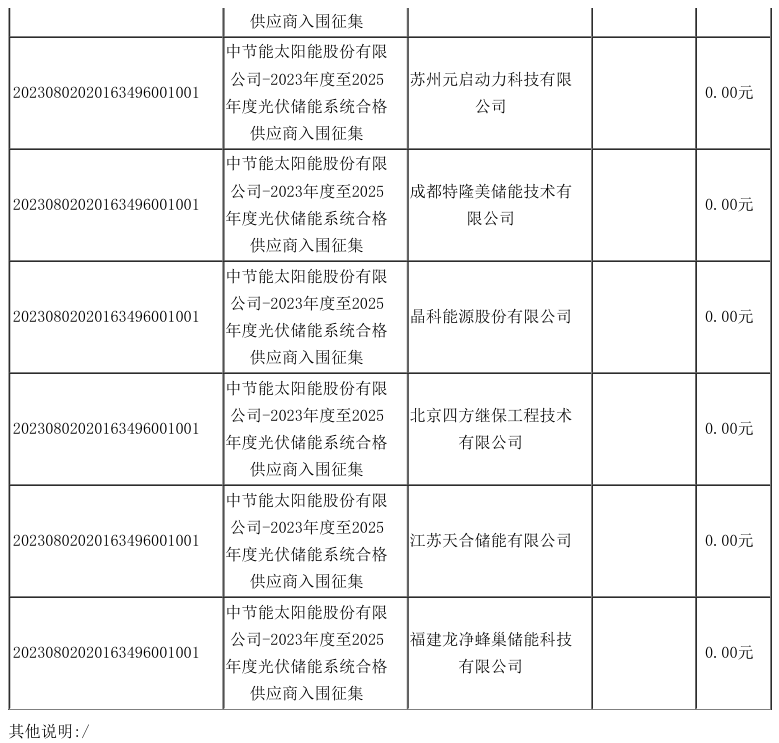 中節(jié)能太陽能股份有限公司-2023年度至2025年度光伏儲(chǔ)能系統(tǒng)合格供應(yīng)商入圍征集中標(biāo)結(jié)果公告