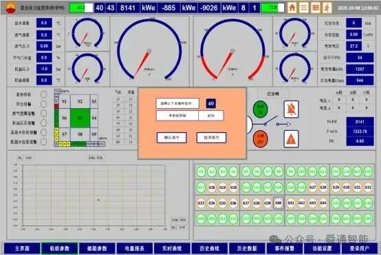 遠(yuǎn)程監(jiān)控手機(jī)APP 所示,可以直接查看全站機(jī)組發(fā)動(dòng)機(jī)熱工參數(shù)、發(fā)電機(jī)、儲(chǔ)能等電氣參數(shù)等運(yùn)行參數(shù)。