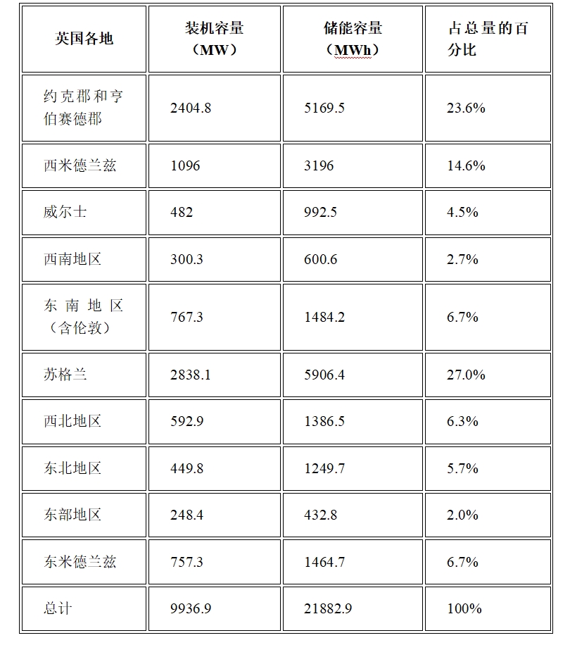 這占約克郡和亨伯賽德地區(qū)在建2.4GW/5.2GWh的一半以上規(guī)模,占英國總量的23.6%(僅次于蘇格蘭)。