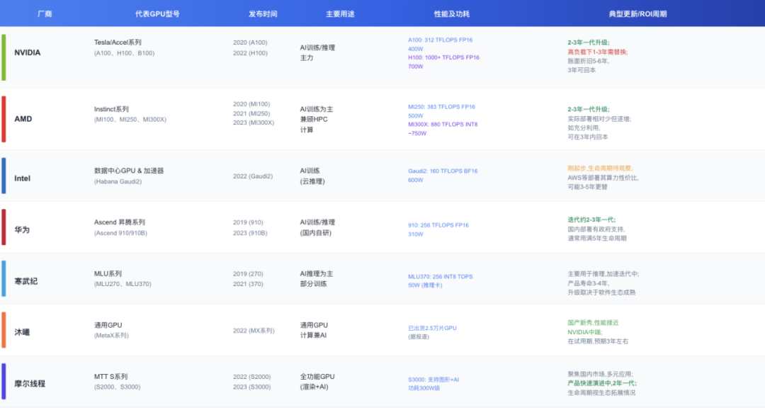 不同區(qū)域由于運營環(huán)境和策略差異,在設(shè)備折舊和資產(chǎn)管理上各有側(cè)重:比如我國重要強調(diào)可控回報和國產(chǎn)替代,北美追求效率領(lǐng)先和靈活財務(wù),東南亞注重成本管控和外部支持。在未來幾年,隨著AI芯片技術(shù)的發(fā)展和各地算力需求的成熟,GPU資產(chǎn)的折舊策略和評估方法也將持續(xù)變化,值得算力產(chǎn)業(yè)高度關(guān)注。