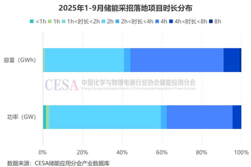 據(jù)CESA儲能應用分會產(chǎn)業(yè)數(shù)據(jù)庫統(tǒng)計,2025年1-9月,國內(nèi)73.2GW/209.76GWh采招落地的儲能項目中,明確時長的儲能項目為71.9GW/202.4GWh。