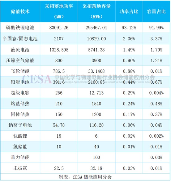 表 2025年1-9月各技術路線儲能采招落地規(guī)模及市場占比