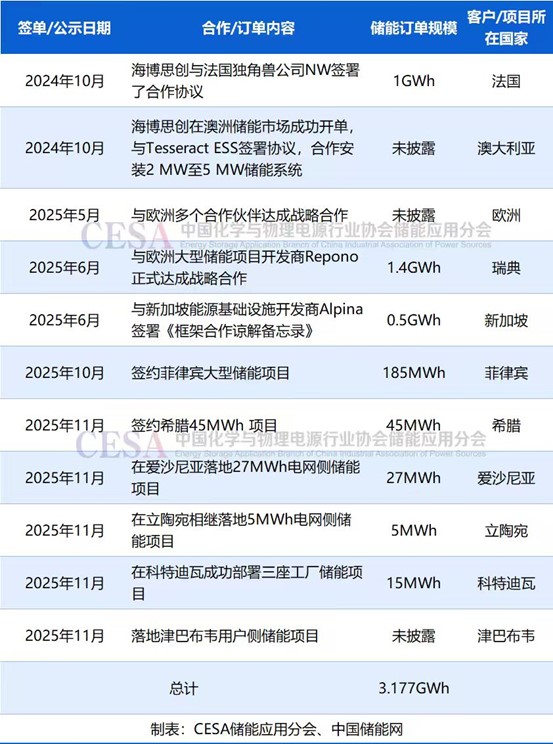 表 2024年10月以來海博思創(chuàng)新增海外儲能訂單/合作
