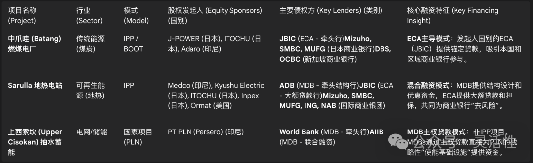 重大項目融資藍圖: 對中爪哇(Batang)燃煤電廠、Sarulla地?zé)犭娬竞蜕衔魉骺玻║pper Cisokan)抽水蓄能項目的分析揭示了三種截然不同的融資模式: