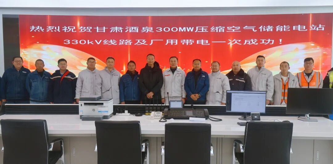 在國家電網(wǎng)等有關(guān)單位的大力支持下,甘肅酒泉項目330千伏線路及全廠受電的一次成功,為機(jī)組后續(xù)調(diào)試工作創(chuàng)造了有利條件,同時也宣布了項目進(jìn)入到全力沖刺階段。下一步,數(shù)科集團(tuán)將全力沖刺機(jī)組并網(wǎng)發(fā)電,成功實現(xiàn)世界首臺(套)人工硐室300MW壓氣儲能的工程化實踐。