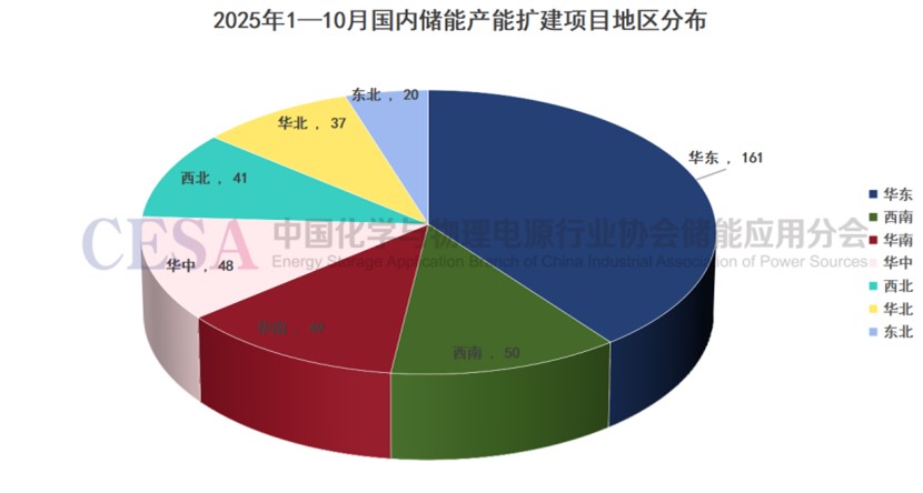 談到儲能產(chǎn)能擴建項目的地域分布,華東地區(qū)無疑是當仁不讓的領(lǐng)頭羊,以161個項目幾乎占據(jù)了全國總量的半壁江山。這背后,長三角經(jīng)濟圈完善的產(chǎn)業(yè)配套和政策先行優(yōu)勢功不可沒。緊隨其后的是西南地區(qū),擁有50個項目,這主要得益于四川、云南等地豐富的水電資源以及新能源基地建設(shè)的旺盛需求。