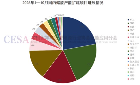 審視項目進展,2025年1月至10月期間,國內(nèi)儲能產(chǎn)能擴建項目展現(xiàn)出了非?;钴S的生命周期。先看前期籌備,光是簽約的項目就有86個,還有23個在規(guī)劃中、15個進入環(huán)評公示,另外1個立項、1個競得地塊,這足以說明企業(yè)和地方都在積極攢資源、做布局。