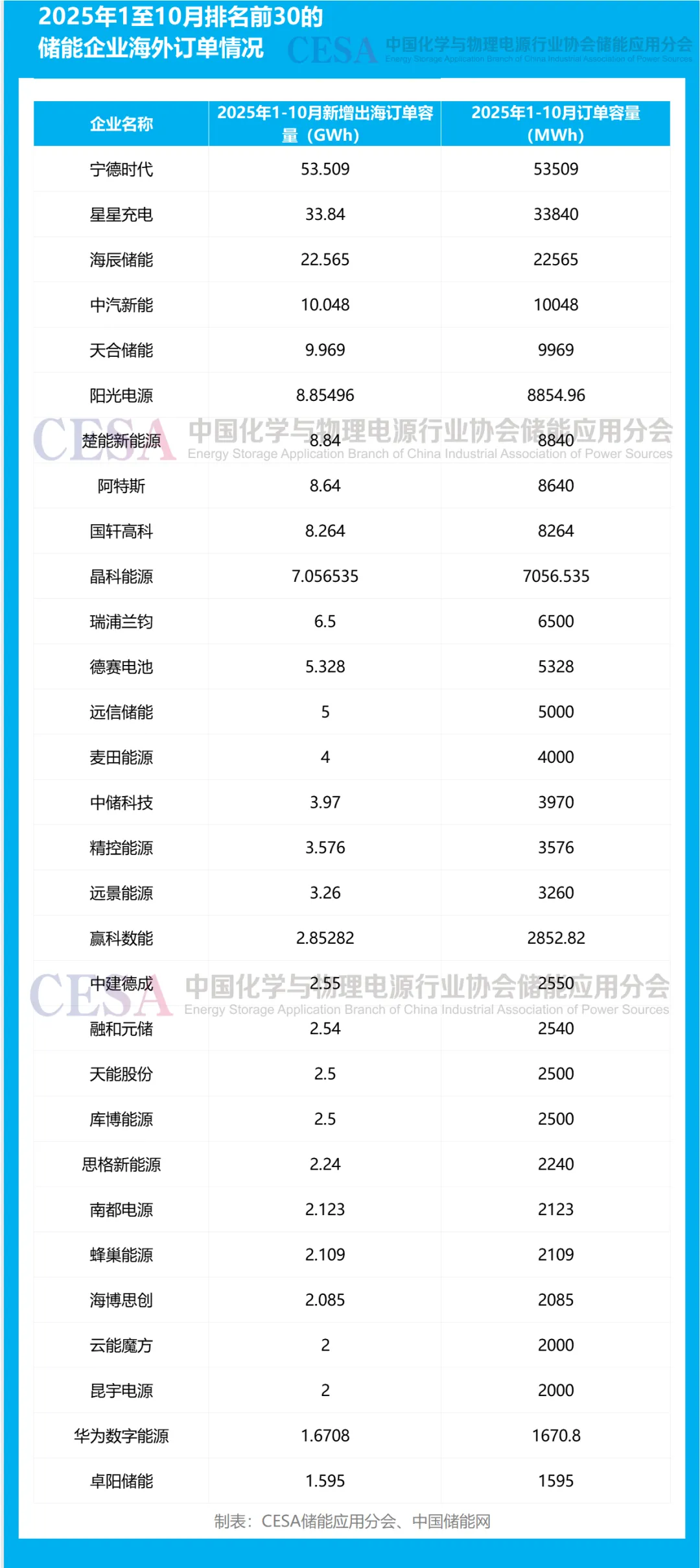 海外市場的巨大潛力也給國內(nèi)儲能企業(yè)帶來了可觀的訂單。根據(jù)CESA儲能應(yīng)用分會數(shù)據(jù)庫的不完全統(tǒng)計,2025年1-10月中國企業(yè)新增儲能出海訂單/合作達267GWh,已遠超去年全年,同比增長145.6%。