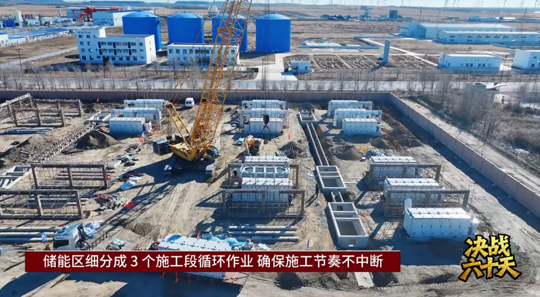 截至目前,該項目砌筑部分全部完工,設備安裝完成40%,電池艙及PCS艙基礎澆筑完成100%,電池艙吊裝完成52臺,PCS吊裝完成24臺,電纜溝澆筑完成70%。