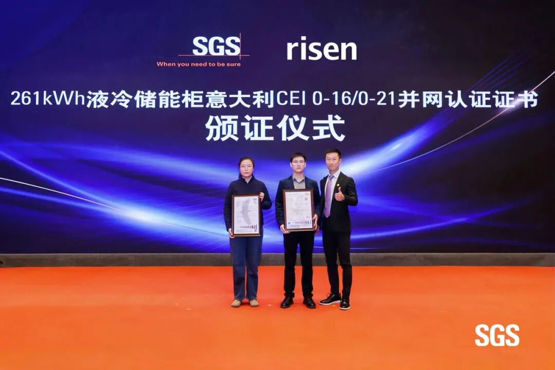 為滿足上述標準,東方日升iCon 125kW/261kWh液冷儲能柜接受了SGS全方位的嚴格測試。在電氣安全、電磁兼容、高低溫濕熱環(huán)境下的性能及材料耐候性等關(guān)鍵指標上,產(chǎn)品均表現(xiàn)卓越,最終完全符合CEI 0-16/0-21標準的技術(shù)要求,成功通過認證。