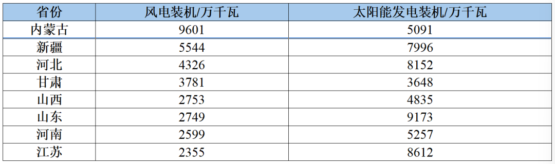 表1 頭部省份風(fēng)光發(fā)電裝機(jī)容量(截至2025年9月)