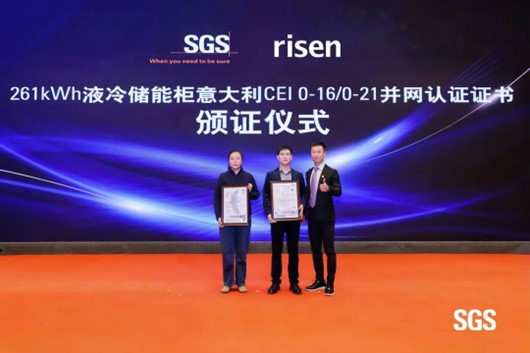 近日,東方日升iCon125kW/261kWh液冷儲能柜成功獲得國際公認(rèn)的測試、檢驗和認(rèn)證機構(gòu)SGS頒發(fā)的意大利中低壓并網(wǎng)認(rèn)證證書,該認(rèn)證標(biāo)志著東方日升儲能產(chǎn)品滿足意大利法定準(zhǔn)入要求,獲市場合規(guī)認(rèn)可。