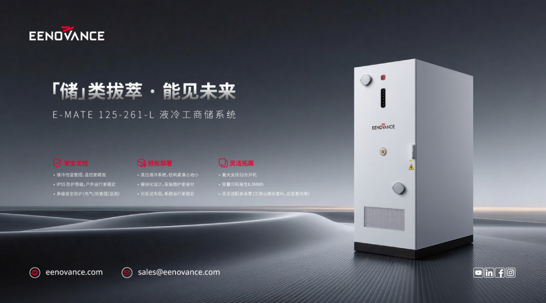 本次通過測試的E-MATE 125–261-L 液冷工商業(yè)儲能系統(tǒng)具備高效率、高安全與高擴(kuò)展性的綜合優(yōu)勢。系統(tǒng)采用液冷溫控技術(shù),使電池在適宜溫區(qū)內(nèi)運(yùn)行,從而有效降低衰減速率、提升循環(huán)壽命,即便在高溫、高負(fù)荷等極端環(huán)境下仍能保持穩(wěn)定輸出性能,保障項目全生命周期收益。