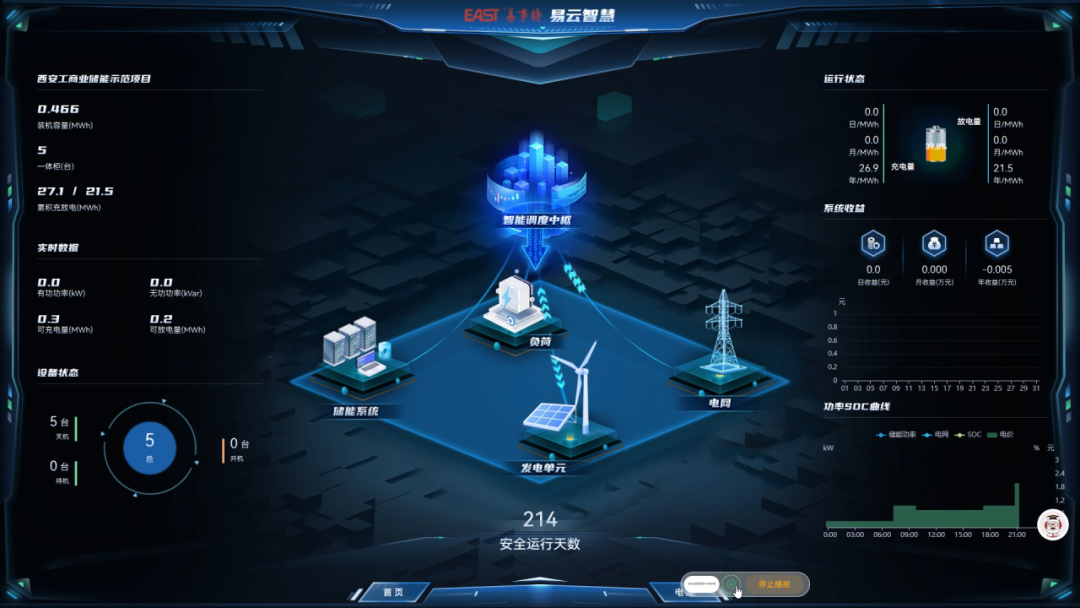 該項目總容量2.088MWh,采用2臺135kW/261kWh液冷儲能柜與3臺135kW/522kWh液冷儲能柜組成系統,通過峰谷套利策略實現了: