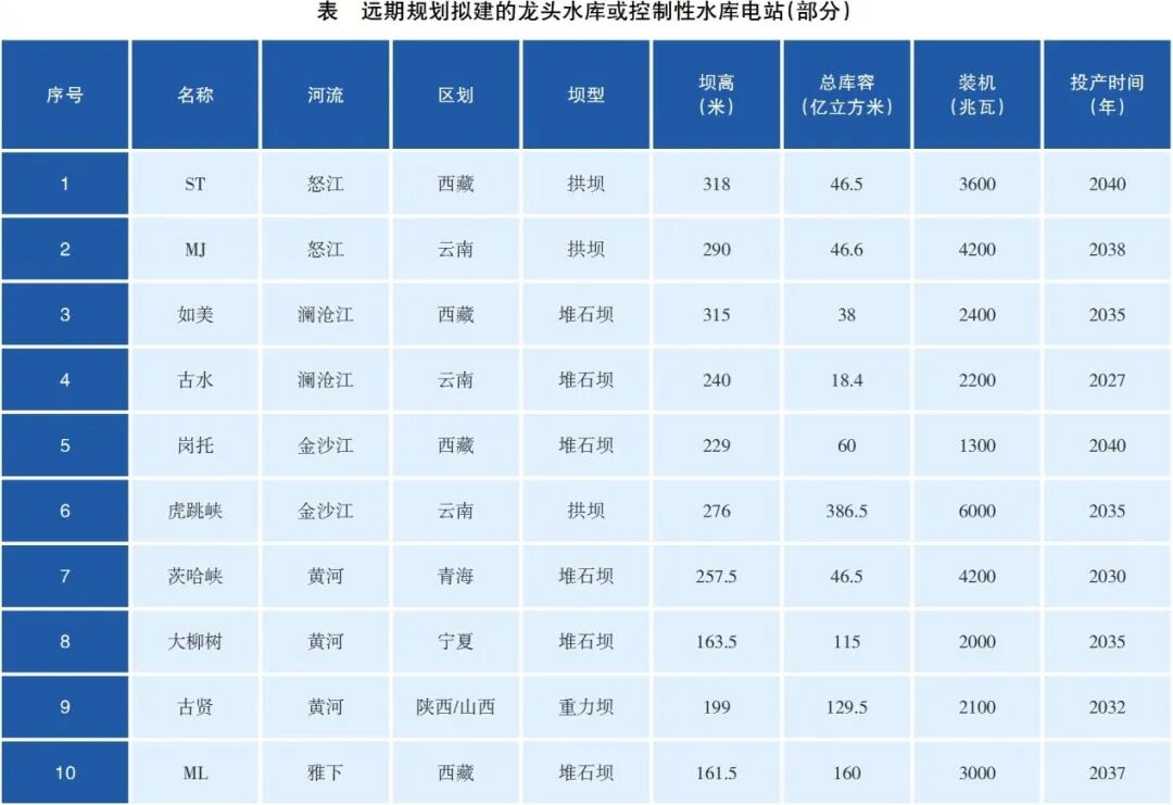 一是積極推動雅魯藏布江下游水電開發(fā),推動西藏清潔能源基地開發(fā)論證;二是加快河流龍頭水庫或控制性水庫建設(見表),增強梯級綜合利用效益;三是推動水電基地升級為更大規(guī)模的水風光儲一體化清潔能源基地,加快流域水風光儲互補開發(fā)規(guī)劃論證,推動水電機組改造和擴機;四是在加快建設抽水蓄能電站的同時,推動梯級水電儲能工廠建設,因地制宜配置新型儲能。
