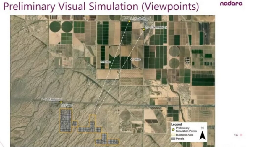 為了啟動該項目建設(shè),Nadara正在尋求批準(zhǔn)將土地用途從極低密度住宅用地改為綠色能源生產(chǎn)用地。項目場地在二戰(zhàn)期間曾是一個靶場,已經(jīng)接受過美國聯(lián)邦政府和環(huán)保審查。該項目在建成之后將通過230kV輸電線路接入亞利桑那公共服務(wù)公司(APS)運營的電網(wǎng)。