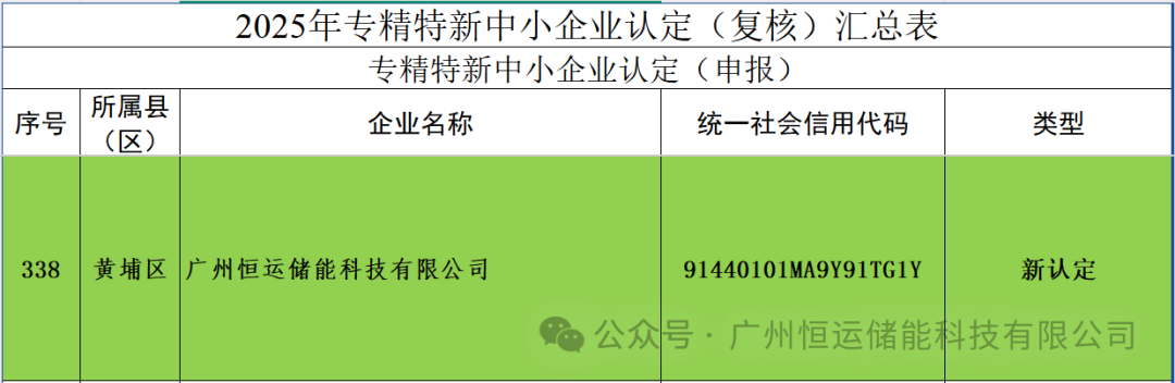 中國(guó)儲(chǔ)能網(wǎng)訊:近日,廣州市工業(yè)和信息化局正式公布2025年度“專(zhuān)精特新”中小企業(yè)認(rèn)定名單,廣州恒運(yùn)儲(chǔ)能科技有限公司憑借在儲(chǔ)能領(lǐng)域的深厚技術(shù)積累、精細(xì)運(yùn)營(yíng)能力及突出創(chuàng)新表現(xiàn),成功躋身榜單!此前,公司投資建設(shè)的廣東凱金新能源2MW/4MWh用戶(hù)側(cè)儲(chǔ)能項(xiàng)目,已入選首批“廣東省先進(jìn)優(yōu)質(zhì)用戶(hù)側(cè)儲(chǔ)能示范項(xiàng)目”。兩大省級(jí)殊榮的加持,既是對(duì)恒運(yùn)儲(chǔ)能專(zhuān)業(yè)化發(fā)展路徑的高度認(rèn)可,更是對(duì)其在儲(chǔ)能細(xì)分賽道核心競(jìng)爭(zhēng)力的權(quán)威認(rèn)證。