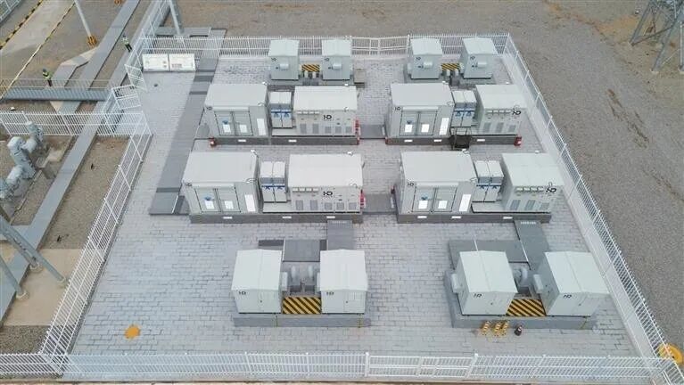 觀摩會上,來自政府、高校、電網(wǎng)企業(yè)及能源行業(yè)的代表前往榆能楊伙盤煤電公司生產(chǎn)現(xiàn)場,實地觀摩了安裝在升壓站區(qū)域的飛輪儲能裝置。