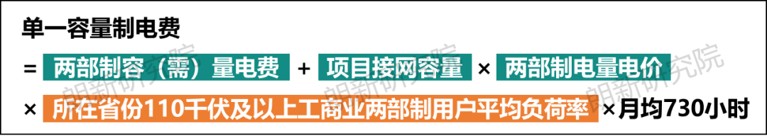 先解釋下什么是單一容量制電價(jià),即除了需要進(jìn)行容量備份的項(xiàng)目外,一般項(xiàng)目輸配電價(jià)不再執(zhí)行“電量電價(jià)+容(需)量電價(jià)”兩部制,只按照新的容(需)量電費(fèi)按月繳納。新的容(需)量電費(fèi)計(jì)算方法如下: