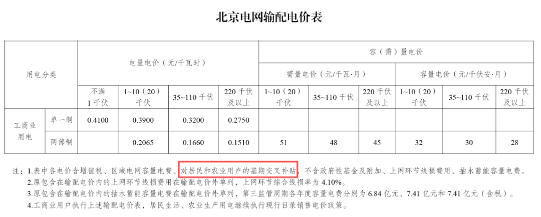 前者主要為工商業(yè)用戶(hù)對(duì)居民農(nóng)業(yè)用戶(hù)的電價(jià)補(bǔ)貼測(cè)算值,隨著輸配電價(jià)核定周期一同測(cè)算,直到第三輪輸配電價(jià)定價(jià)為止仍包含在輸配電價(jià)中。
