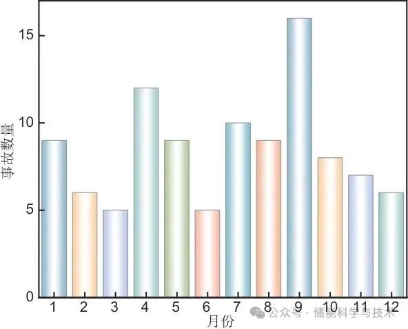 圖3 電化學儲能電站火災事故按月份的統(tǒng)計
