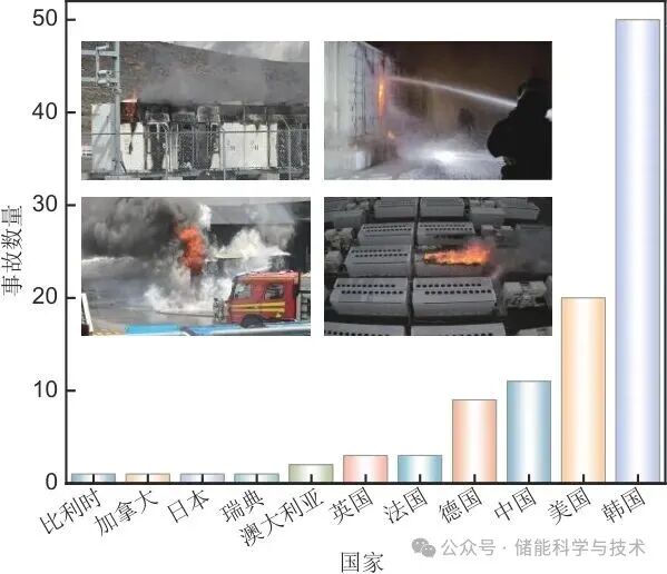 圖4 電化學儲能電站火災事故按國家的統(tǒng)計