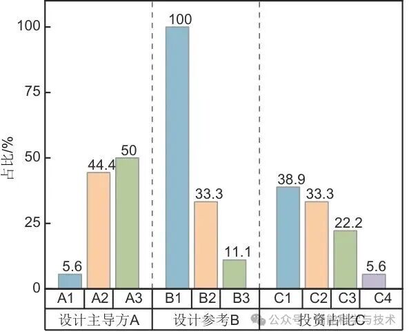 注:A1—業(yè)主單位;A2—設計院;A3—工程總承包;B1—國家標準規(guī)范;B2—集團企業(yè)標準;B3—省級地方標準;C1—2%以下;C2—2%~3%;C3—3%~5%;C4—5%以上