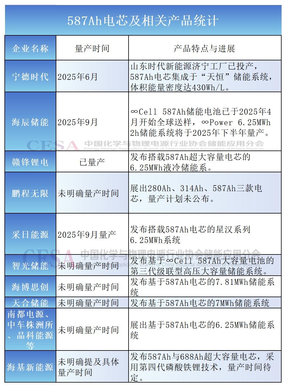 另外,?;鶅?chǔ)能、鵬程無限、贛鋒鋰電等鋰電企業(yè)也推出自有587Ah產(chǎn)品。