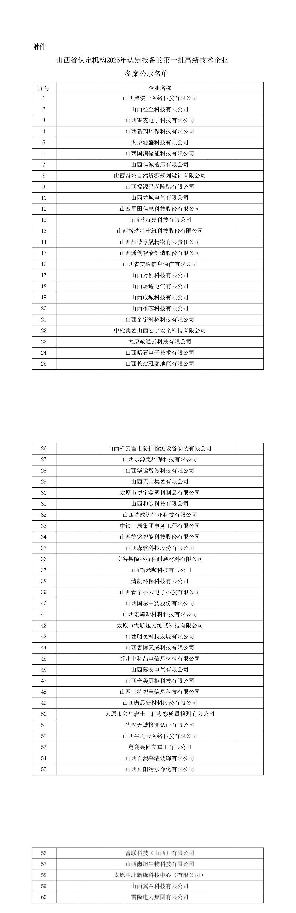 附件:山西省認(rèn)定機構(gòu)2025年認(rèn)定報備的第一批高新技術(shù)企業(yè)備案公示名單