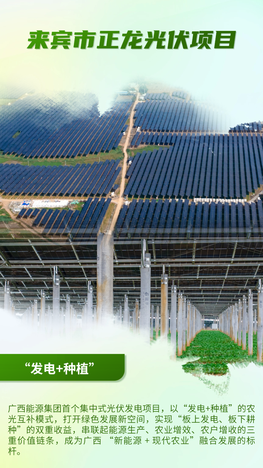 目前,廣西能源集團光伏產(chǎn)業(yè)已實現(xiàn)南寧、柳州、來賓、賀州、梧州、北海等區(qū)內(nèi)重點區(qū)域的廣泛布局,同時打造了“光伏+農(nóng)業(yè)”“光伏+工業(yè)園區(qū)”“光伏+儲能”“光伏+鄉(xiāng)村振興”等多元融合應用場景,形成了多區(qū)域覆蓋、多場景落地的新能源發(fā)展格局。