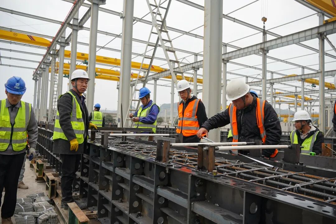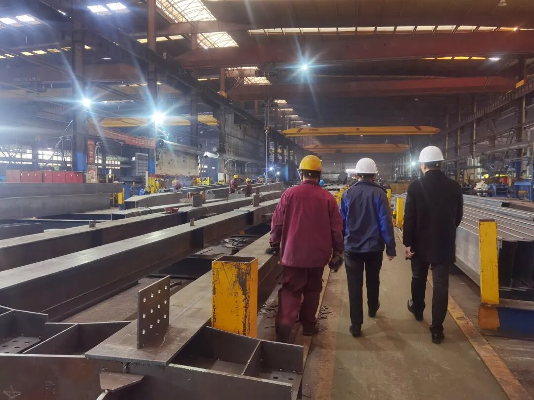 預(yù)制柱穩(wěn)穩(wěn)扎根的同時,鋼結(jié)構(gòu)主體施工的“糧草先行”早已鋪展開來,為確保后續(xù)大面積廠房施工無縫銜接,楚能新能源二期項(xiàng)目服務(wù)工作協(xié)調(diào)機(jī)制辦公室未雨綢繆。此前,機(jī)制辦成員會同區(qū)經(jīng)信商務(wù)局、龍泉鎮(zhèn)與中建三局,專程赴安徽合肥開展供應(yīng)鏈調(diào)研,實(shí)地走訪鴻路鋼構(gòu)、偉宏鋼構(gòu)兩家龍頭企業(yè)。在鴻路鋼構(gòu)生產(chǎn)車間,機(jī)器轟鳴不絕于耳,十余條生產(chǎn)線24小時輪班作業(yè),原材料庫存充足率達(dá)120%;偉宏鋼構(gòu)則專門配備30名質(zhì)檢人員,對焊縫精度實(shí)行全程追溯。