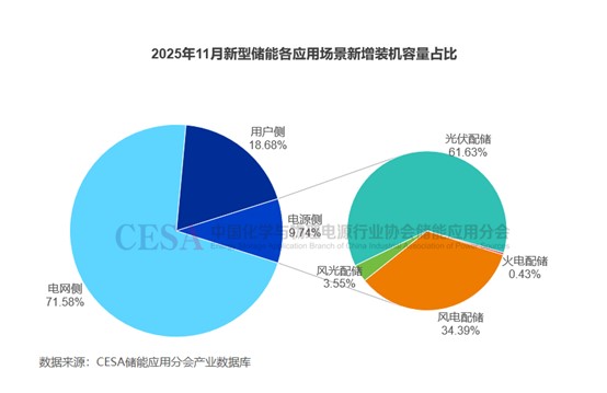 中國儲能網(wǎng)訊:據(jù)CESA儲能應(yīng)用分會數(shù)據(jù)庫不完全統(tǒng)計(jì),2025年11月,國內(nèi)新型儲能新增裝機(jī)總規(guī)模為4.51GW/13.03GWh,環(huán)比+57.14%(功率)/+74.66%(容量),同比+45.95%(功率)/+49.6%(容量)。