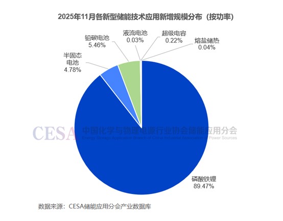 儲能技術(shù)路線方面,11月新增投運(yùn)儲能項(xiàng)目中,磷酸鐵鋰儲能技術(shù)并網(wǎng)總功率占比達(dá)89.47%,繼續(xù)保持主導(dǎo)地位。