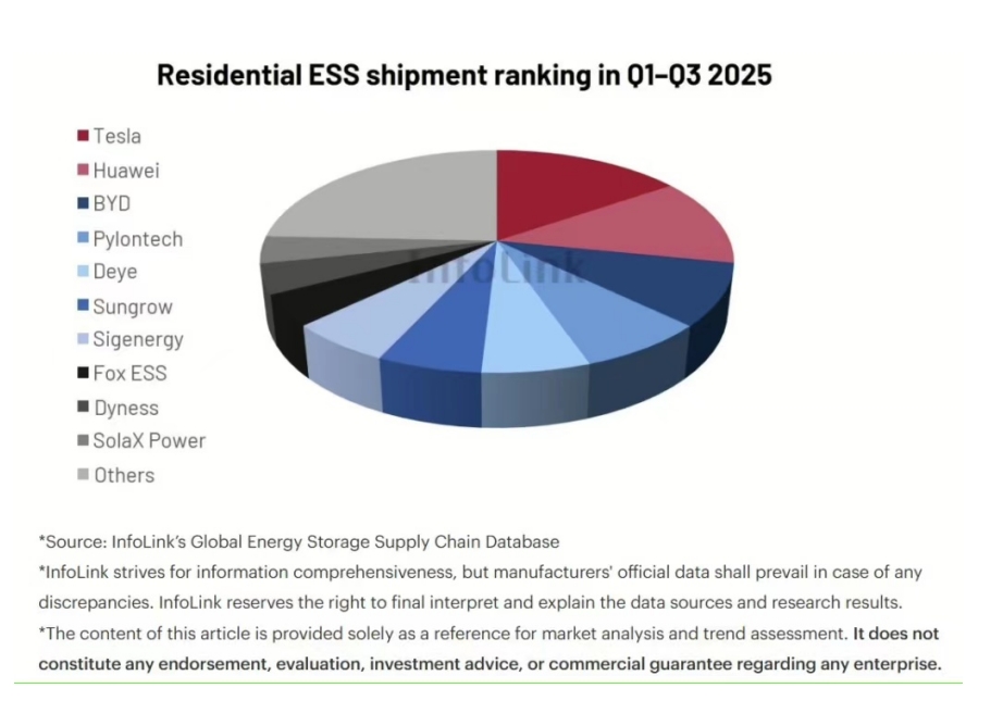 圖2 2025年前三季度全球住宅電池儲能系統(tǒng)出貨量
