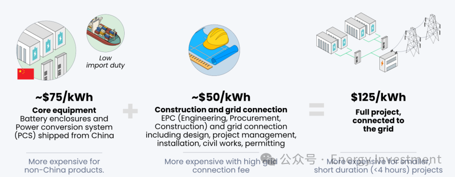 高關(guān)稅市場:核心設(shè)備成本可達(dá)$100/kWh或更高
