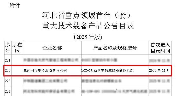 中國(guó)儲(chǔ)能網(wǎng)訊:近期,河北省工業(yè)和信息化廳發(fā)布《河北省重點(diǎn)領(lǐng)域首臺(tái)(套)重大技術(shù)裝備產(chǎn)品公告目錄(2025年版)》,三河同飛制冷股份有限公司自主研發(fā)的“LCI-CR系列寬溫域儲(chǔ)能液冷機(jī)組”憑借卓越的技術(shù)創(chuàng)新性和產(chǎn)品性能成功入選。