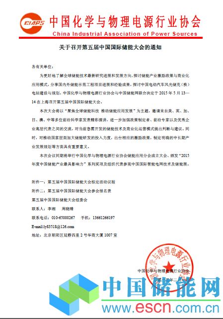 附件三:中國化學與物理電源行業(yè)協(xié)會《關于召開第五屆中國國際儲能大會的通知》文件
