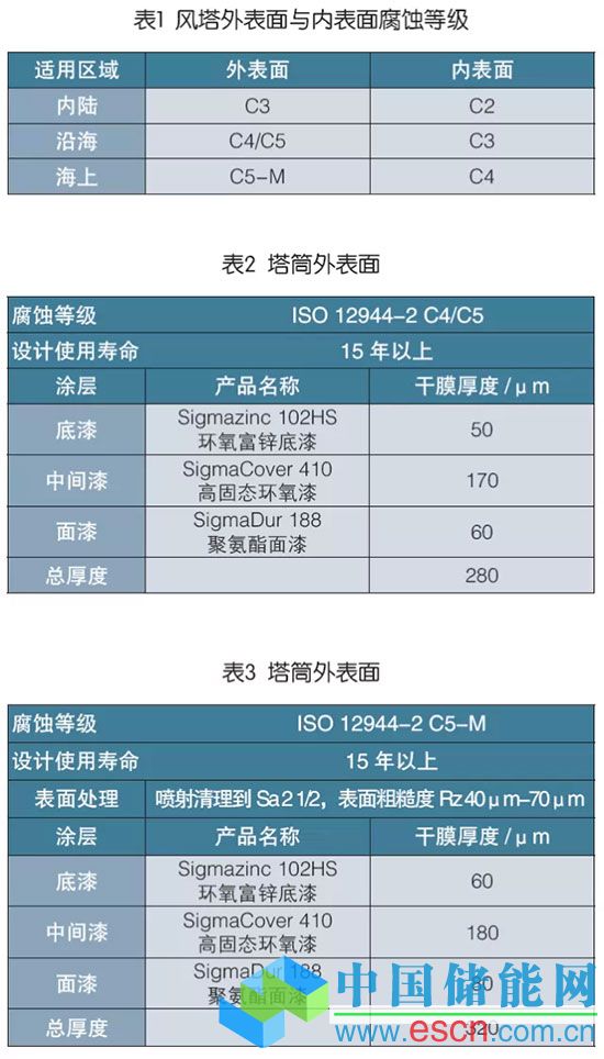 從表2、表3中可見,這個防腐標(biāo)準(zhǔn)并沒有闡述適用于中國的哪一個海域及海岸帶的實際情況,根據(jù)某公司對其海上風(fēng)電機組的情況介紹:風(fēng)電機組在某海域運行沒有問題,然而該風(fēng)電機組在中國的海南東方南海海岸線上運行時,機艙內(nèi)的電路板及部分葉片確被鹽霧腐蝕,這足可以說明各海域的自然氣候條件是有區(qū)別的,當(dāng)然應(yīng)該區(qū)別對待,所以我認(rèn)為應(yīng)該根據(jù)海南的具體自然氣候條件情況,裝在海南海岸帶上的風(fēng)電機組應(yīng)該按該標(biāo)準(zhǔn)中海上風(fēng)電機組防腐標(biāo)準(zhǔn)執(zhí)行,才能夠更加安全。
