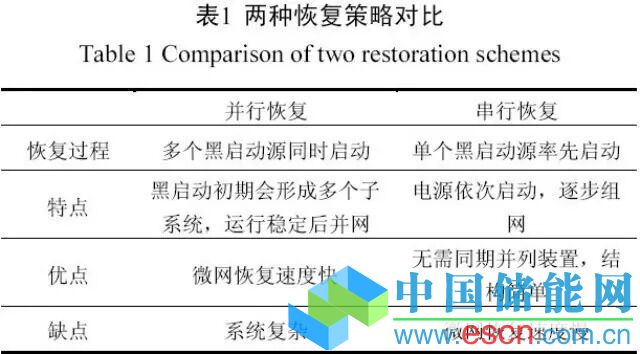所謂微網(wǎng)黑啟動(dòng)(Black Start),指在整個(gè)微網(wǎng)因外部或內(nèi)部故障停運(yùn)進(jìn)入全黑狀態(tài)后,不依靠大電網(wǎng)或其他微網(wǎng)的幫助,僅通過啟動(dòng)微網(wǎng)內(nèi)部具有黑啟動(dòng)能力的微源,進(jìn)而帶動(dòng)微網(wǎng)內(nèi)無黑啟動(dòng)能力的微源,逐步擴(kuò)大系統(tǒng)的恢復(fù)范圍,最終實(shí)現(xiàn)整個(gè)微網(wǎng)的重新啟動(dòng)。