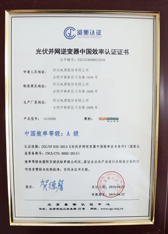 2013年,鑒衡認(rèn)證中心在總結(jié)前期逆變器測(cè)試認(rèn)證經(jīng)驗(yàn)基礎(chǔ)上,并結(jié)合國(guó)內(nèi)外最新的研究成果,針對(duì)中國(guó)光伏發(fā)電建設(shè)及運(yùn)行環(huán)境的特點(diǎn)在國(guó)內(nèi)率先提出了“中國(guó)效率”的概念,并牽頭起草該技術(shù)規(guī)范。2014年《光伏并網(wǎng)逆變器中國(guó)效率技術(shù)條件》順利通過(guò)了由逆變器主流企業(yè)、主要檢測(cè)認(rèn)證機(jī)構(gòu)及行業(yè)專家組成的審查組的審查,經(jīng)國(guó)家認(rèn)監(jiān)委備案并正式對(duì)外發(fā)布實(shí)施。